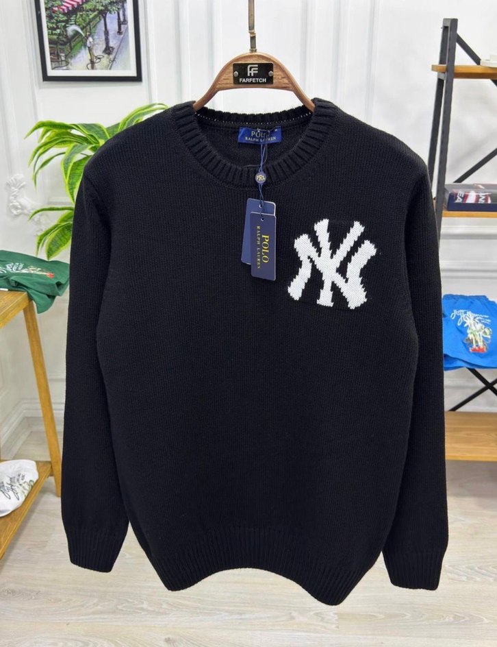 Nakışlı desenli, yuvarlak yaka uzun kollu siyah triko kazak, rahat kesimiyle günlük kullanıma uygundur.