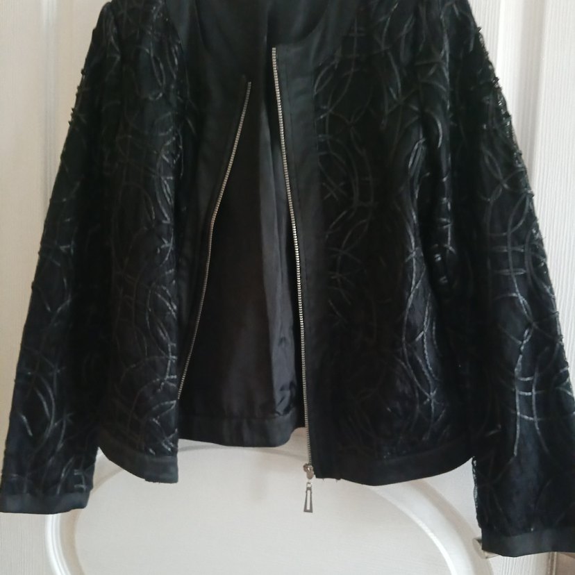 Siyah, nakışlı, sentetik kumaştan yapılmış, normal boy, uzun kollu, fermuarlı ve regular fit kadın gotik ceketi. Ofis için uygun şık bir parça. deri detaylı şık bir parça