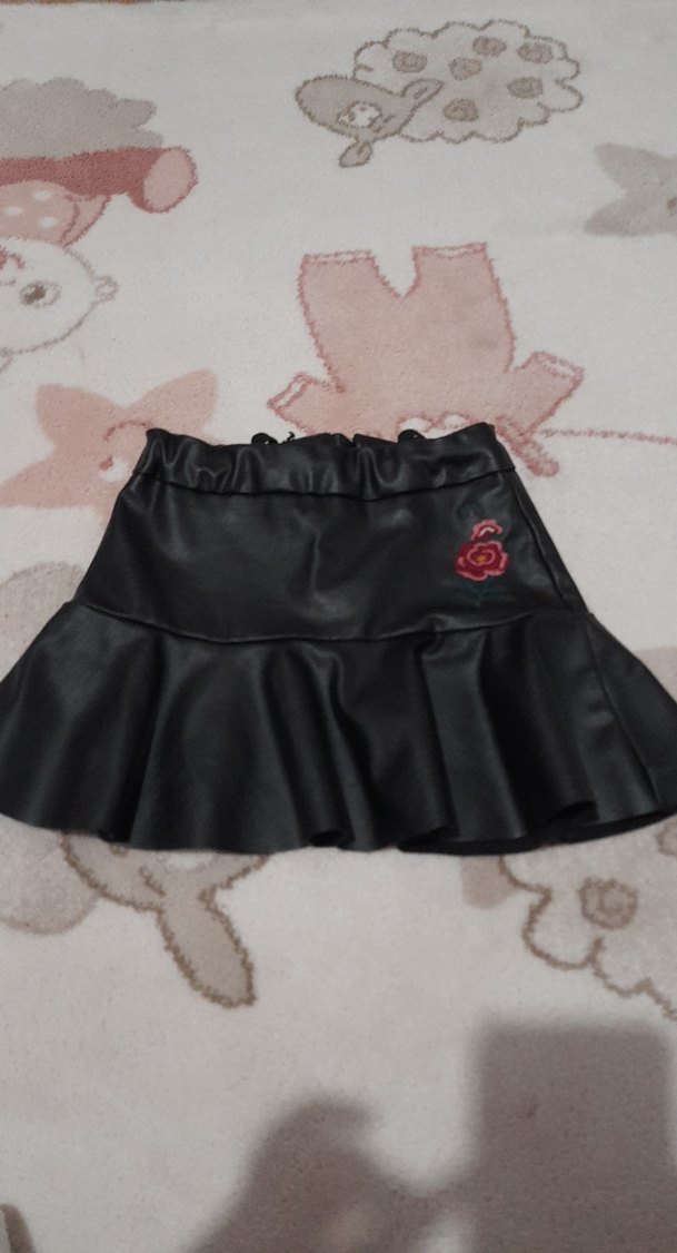 Bu siyah, dar kesim etek, volanlı etek ucu ve nakışlı gül detayı ile sentetik kumaştan yapılmıştır, şık gotik tarz için uygundur.