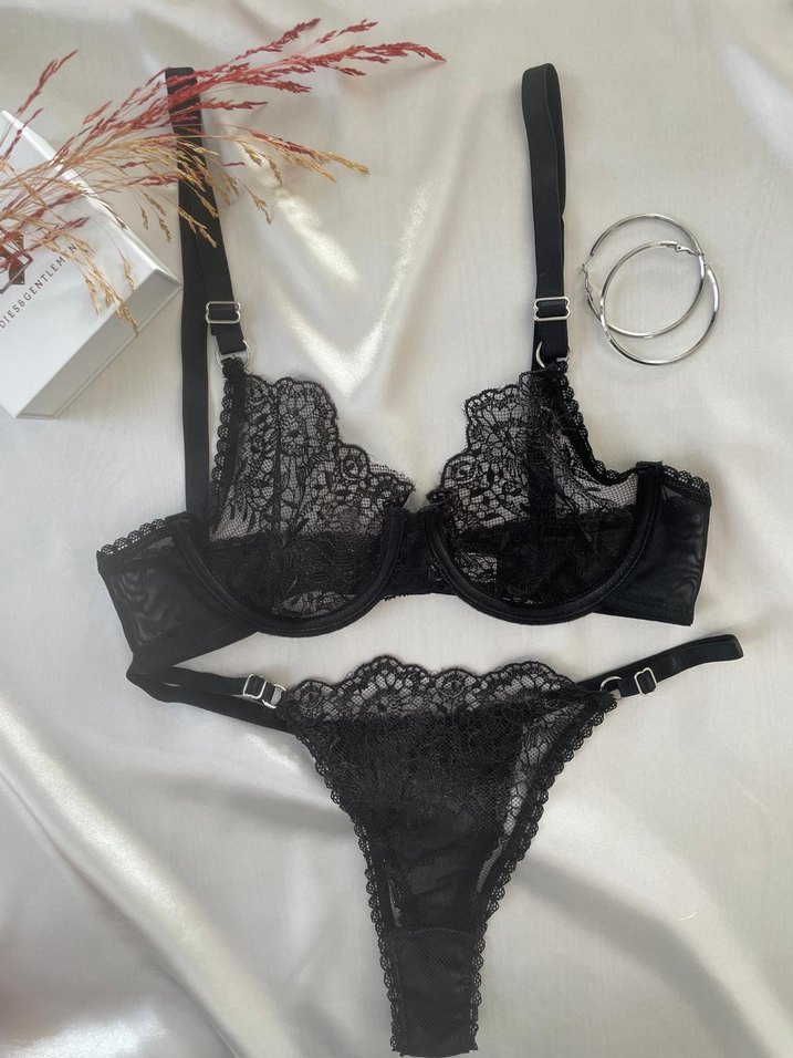 Nakışlı detaylara sahip siyah gotik sütyen ve külot takımı, ayarlanabilir askılı midi uzunlukta. bedenleri mevcuttur. Bir beden büyük alınız.