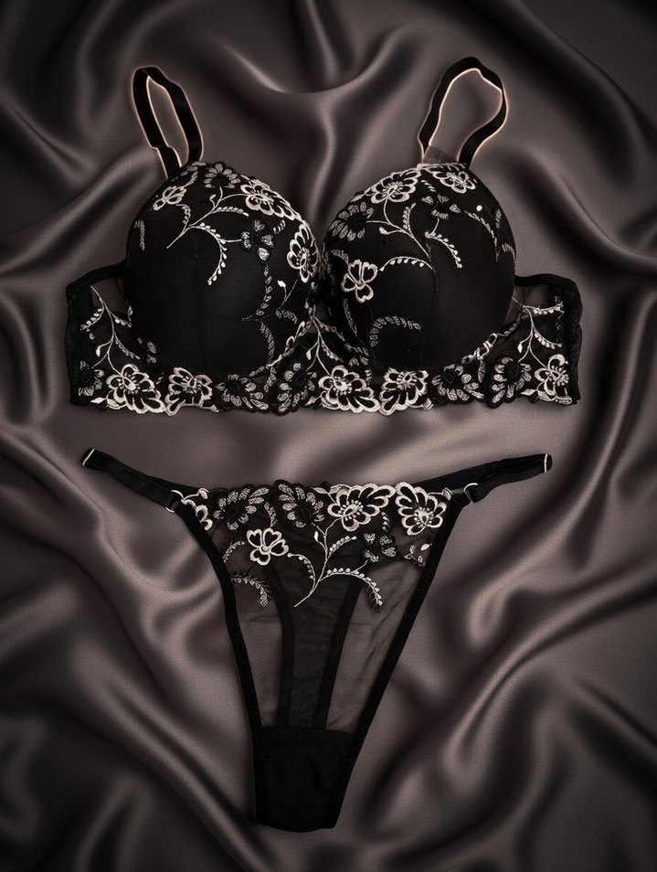 Nakışlı Siyah Gotik Sütyen ve Külot Takımı