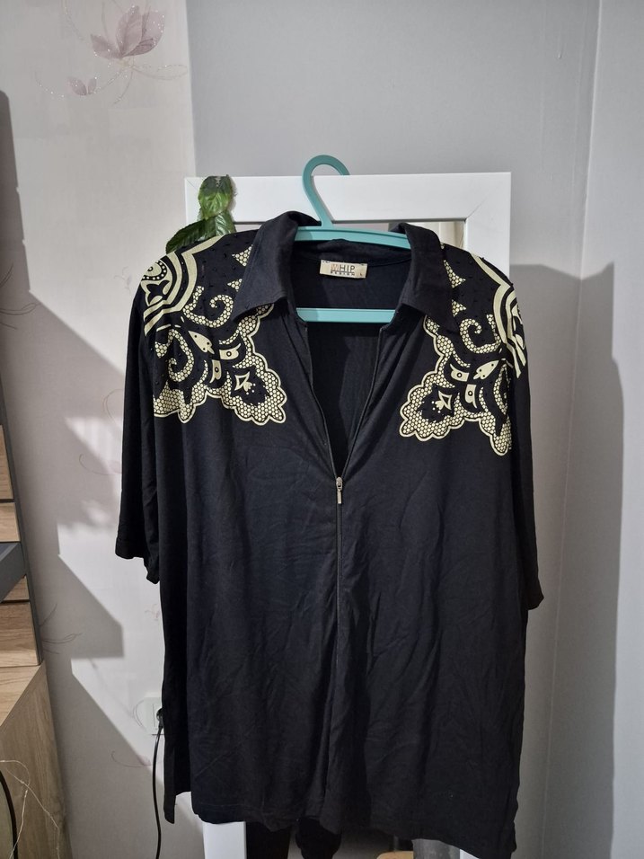 Nakışlı detaylara sahip siyah, bol kesim kadın gömlek. Kısa kollu, yakalı ve önünde fermuar bulunur. İpeksi dokusu ile vintage ve bohem tarzına uygundur. ✨