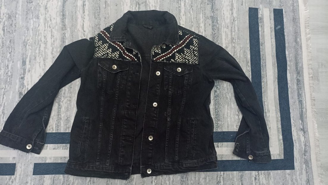 Bu siyah kot ceket, omuzlarda nakış detayları, kesik yaka ve düğmeli kapama ile tasarlanmıştır. Uzun kollu, normal kesim ve günlük kullanım için uygundur.