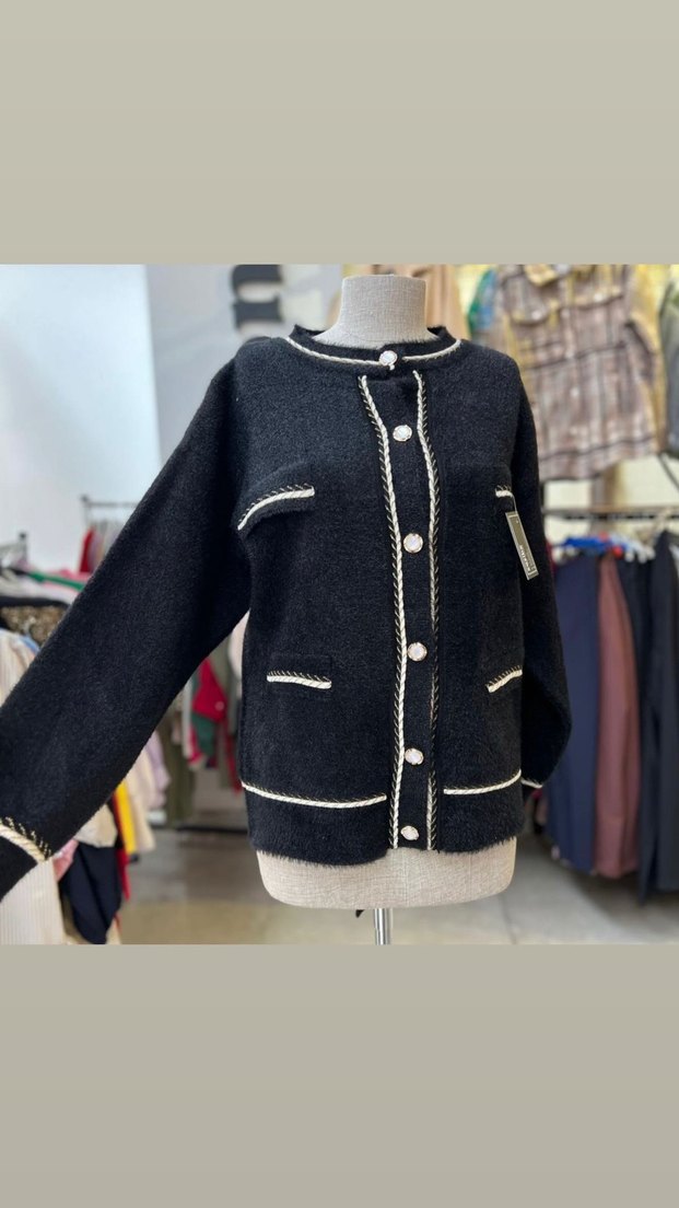 Uzun kollu, bisiklet yaka, nakışlı detaylara sahip siyah triko hırka. Normal uzunlukta ve regular fit, günlük rahat kullanım için uygun.
