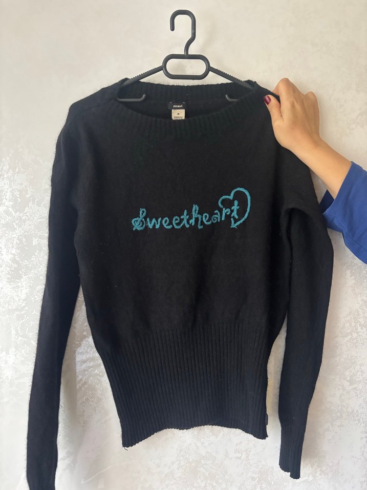 Nakışlı Siyah Kadın Triko Kazak