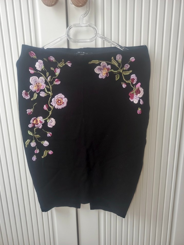 Nakışlı çiçek desenleri ve drapeli tasarımıyla siyah, vücuda oturan midi , romantik akşamlar için ideal. Paris tarzı gotik ve avangart.