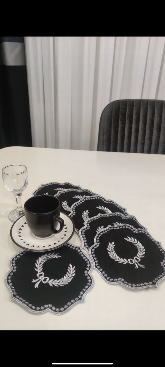 Modern klasik tarzda, gümüş yaprak nakışlı siyah amerikan servis seti, sofranıza şıklık katmak için ideal. ️