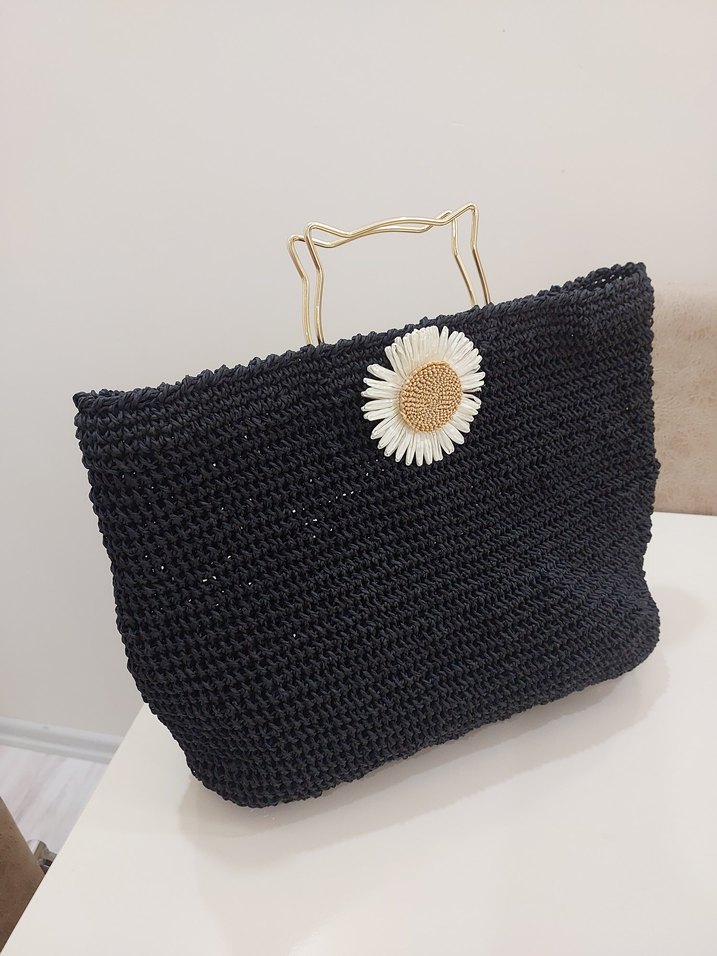 Siyah kağıt ip örgü , metal saplı ve çiçek detaylı günlük kullanıma uygundur.
