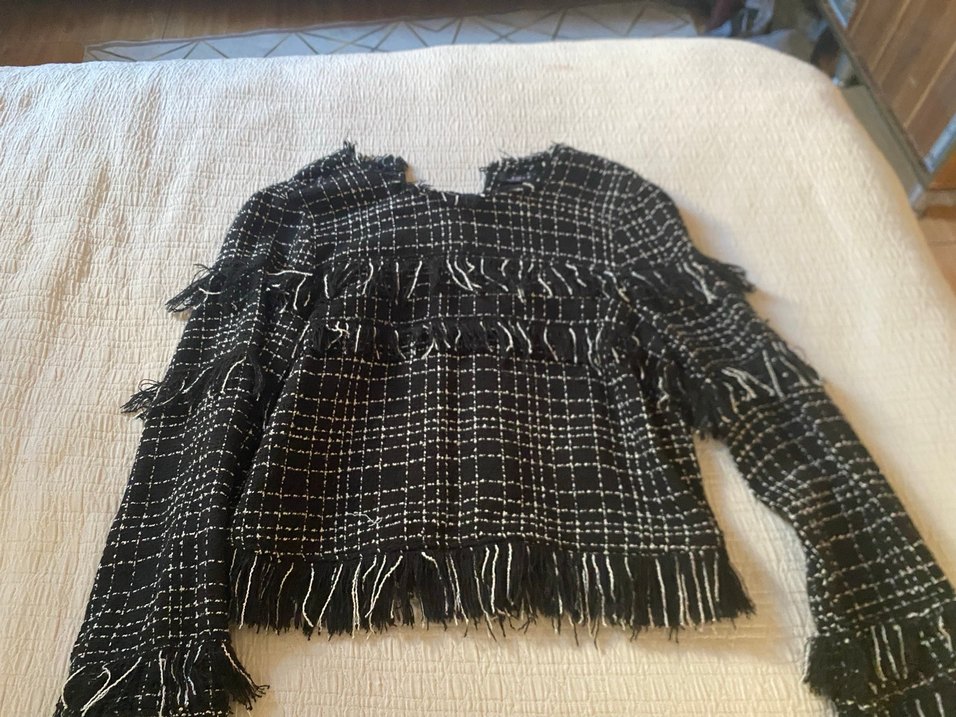 Uzun kollu, yuvarlak yakalı siyah örgü kadın kazak. Nakışlı detaylar ve püskül süslemeleriyle bohem tarzını yansıtıyor. Kısa boy, günlük kullanıma uygun.