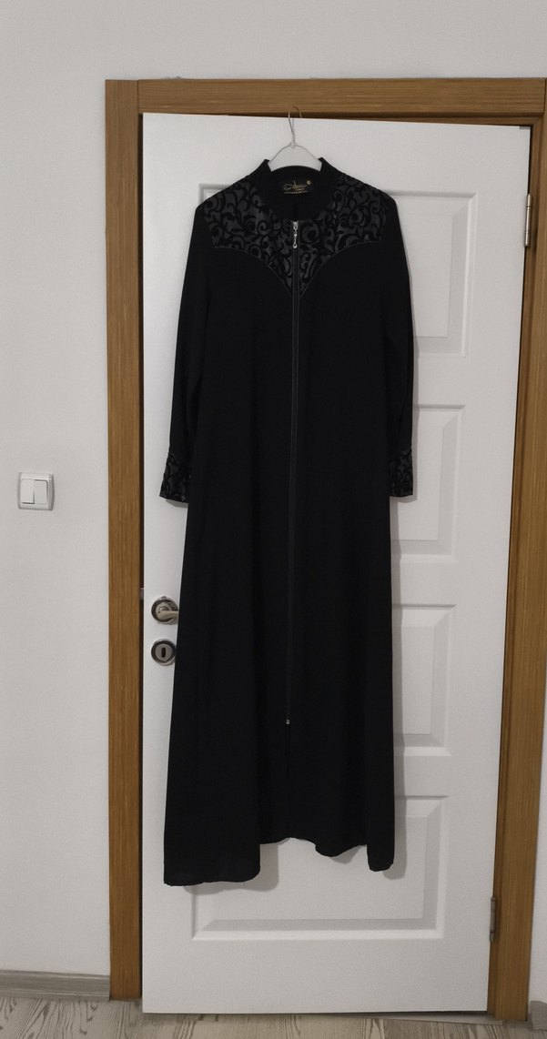 Nakışlı Siyah Süet Uzun Kadın abaya