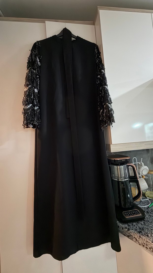 Nakışlı Siyah Uzun Kollu Gotik Elbise