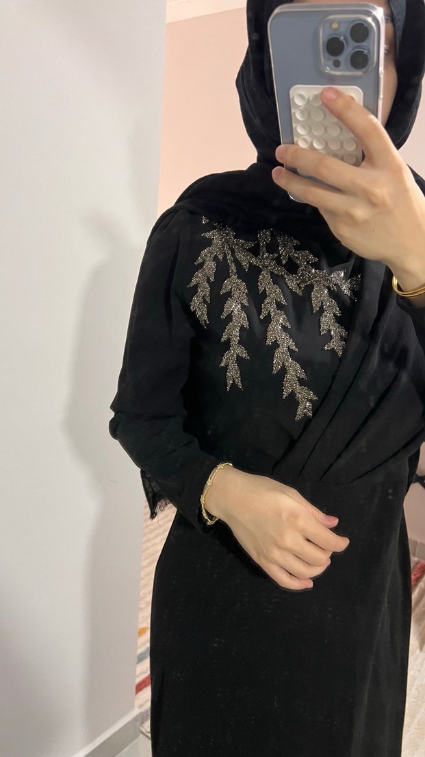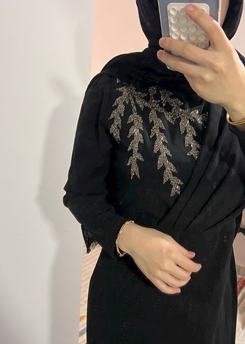Nakışlı Siyah Uzun Kollu Tesettür Elbise