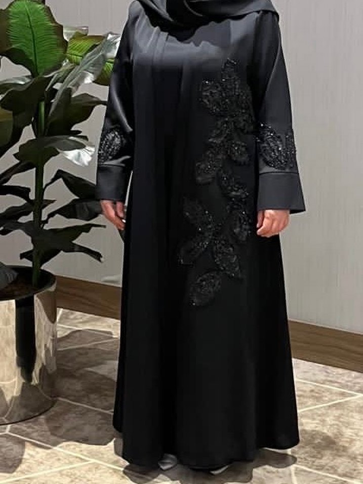 Nakışlı Siyah Uzun Kollu Uzun abaya bile