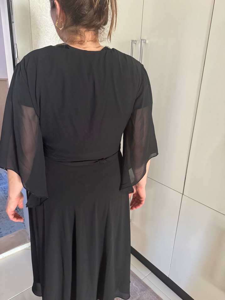 Nakış işlemeli desenlere sahip, bol kesim ve drapeli uzun siyah gece elbisesi. Uzun kollu ve V yakalı, gotik tarzda parti elbisesi. Anneme hediye geldi ama tarzı a uygun olmadı için satıyor