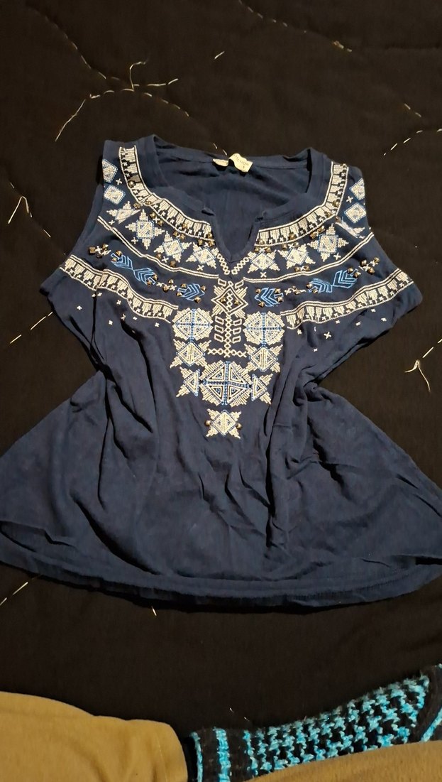 lacivert renkte V yakalı ve kolsuz bohem tarzda bluz temiz ürün