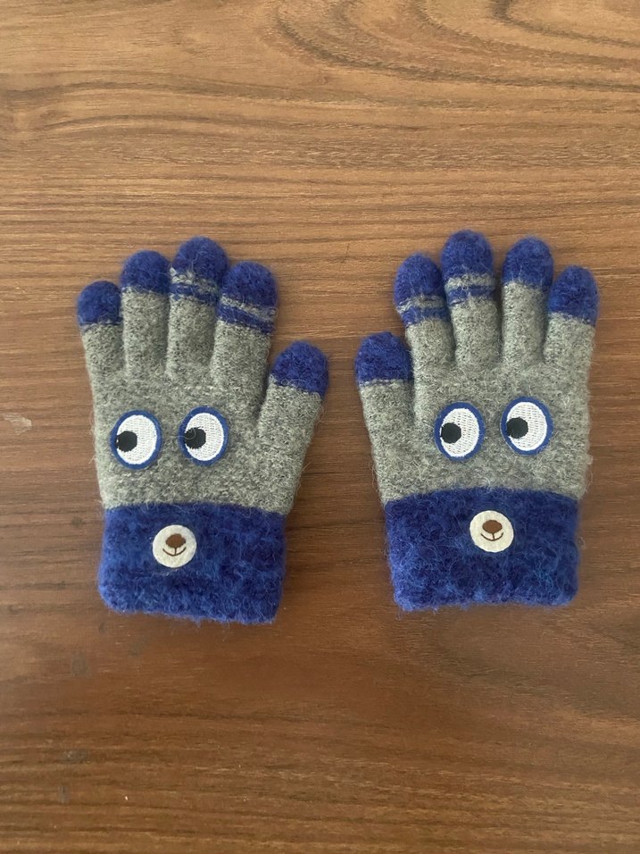 Nakışlı göz ve burun detaylı, yumuşak ve sıcak kumaştan örülmüş gri eldiveni. Trendi ve rahat tarz için uygun.