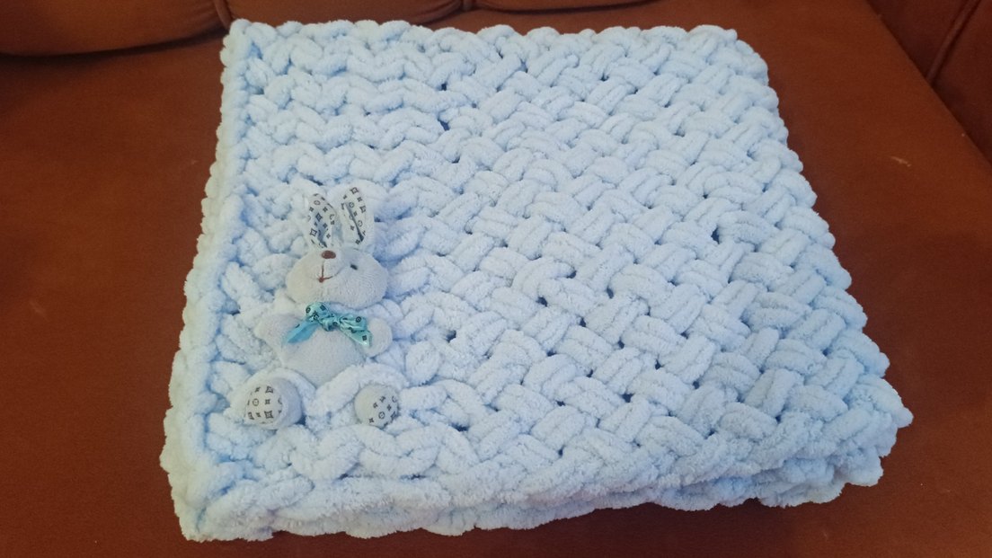 Nakışlı detaylara sahip yumuşak triko dokulu, renkli mavi tonunda çocuk battaniyesi.