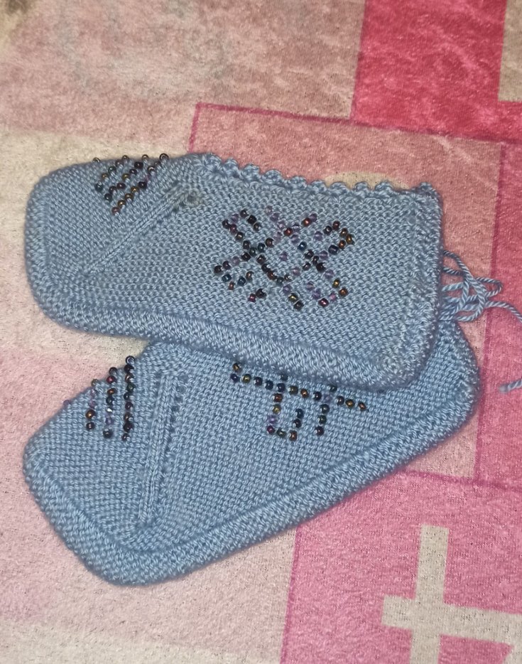 Nakışlı Triko Mavi Kadın patik