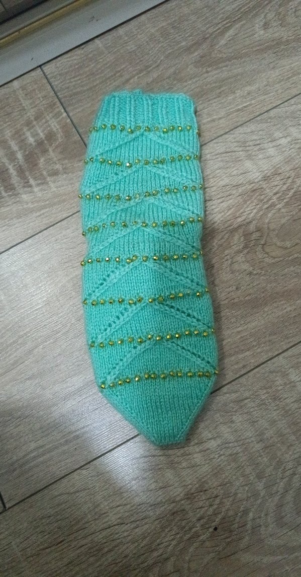 Turkuaz renkli, nakışlı ve boncuk detaylı kadın çorabı. Yumuşak dokusu ile rahat kullanım sağlar. örülmüştür el emegi göz nuru