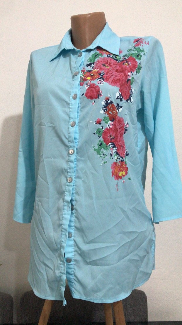 Uzun kollu, yakalı ve düğmeli bu gömlek, yumuşak tekstil kumaştan yapılmıştır. Gevşek kesimi ve canlı çiçek nakışıyla bohem tarzını yansıtır.