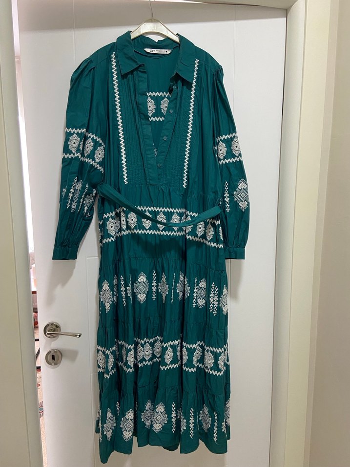 Nakışlı Turkuaz zara Uzun Kol Elbise