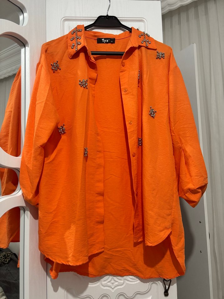 Nakışlı Turuncu Mini Kadın Gömlek