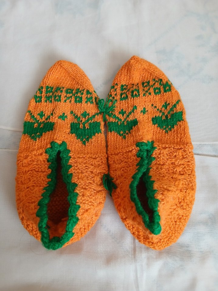 Nakışlı Turuncu Örgü Kadın Patik