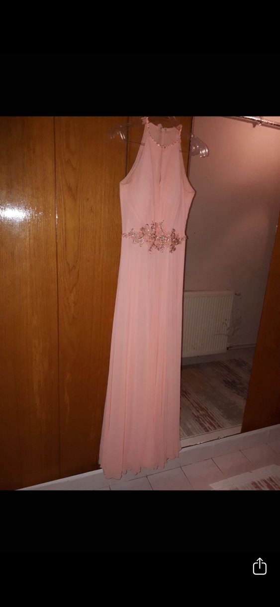 Somon renk nakış detaylı, uzun abiye elbise, drapeli ve vücuda oturan kesimiyle düğün ve nişan için uygundur. Bu elbiseyi sadece bir kez abimin düğününde kullandım uç kısımları belirsiz bir şekilde hafif kirli gibi ama büzgülü olduğu için belli olmuyor o yüzden dilerseniz kuru temizleme de yapabilirsiniz ayrıca göğsüm küçük olduğu için ben içine sütyen giymiştim ve tam oturmuştu göğüs kalıbı bir tık geniştir tekrar kullanmayacağım için satıyorum bedeni 38 yazıyor ama ben 36 bedenim bel kısmı incedir