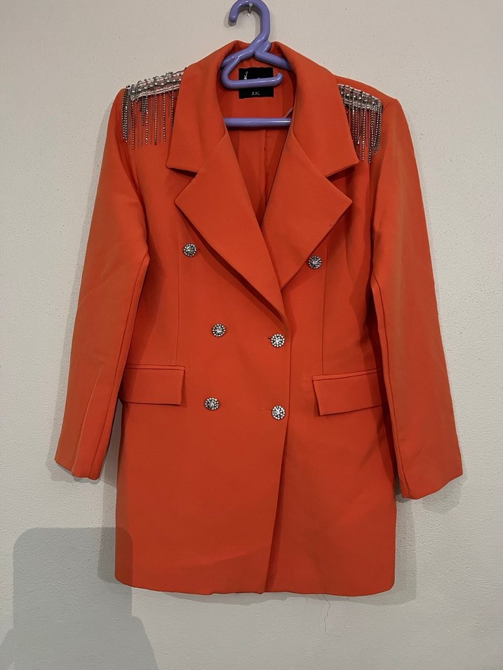 Nakışlı detaylara sahip kadın blazer, düğmeli ve uzun kolludur. Sentetik kumaştan, regular fit ve uzun boydadır. Ofis ve sokak stiline uygundur.