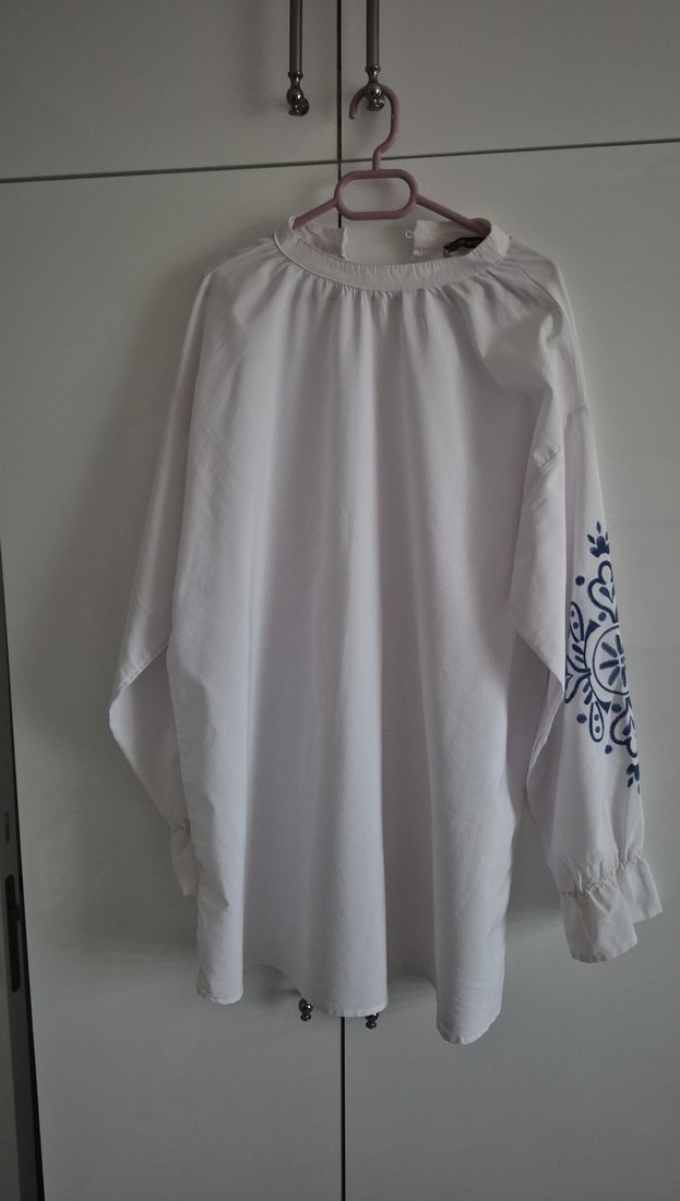 Nakışlı Uzun Kollu Beyaz Kadın Bluz