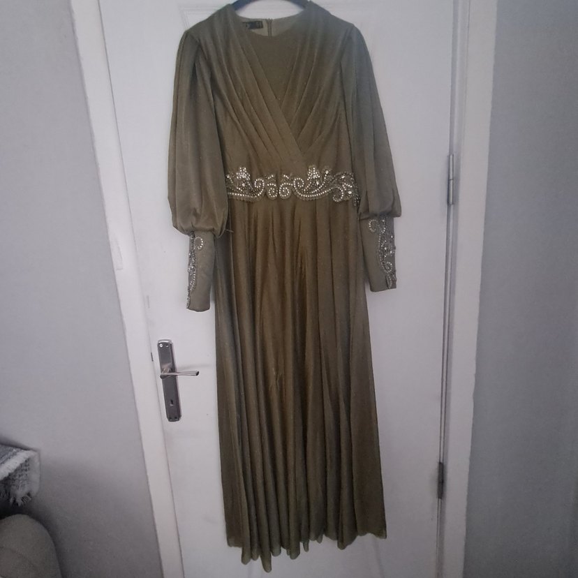 fotoğraflarda renk tonu farklılığı var koyu yeşildir boyu 145 simli Parlak