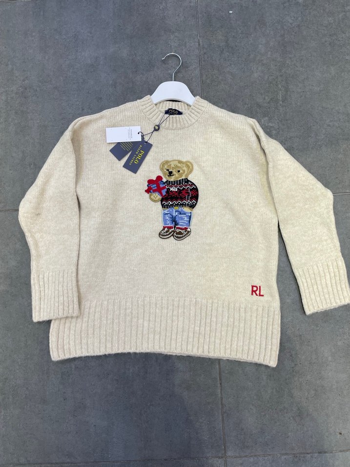 Bu beyaz triko kazak, yuvarlak yakalı ve uzun kolludur. Önde nakışlı ayıcık deseni ve etek ucunda "RL" nakışı bulunur. Rahat kesimli, midi boy ve günlük kullanıma uygundur.