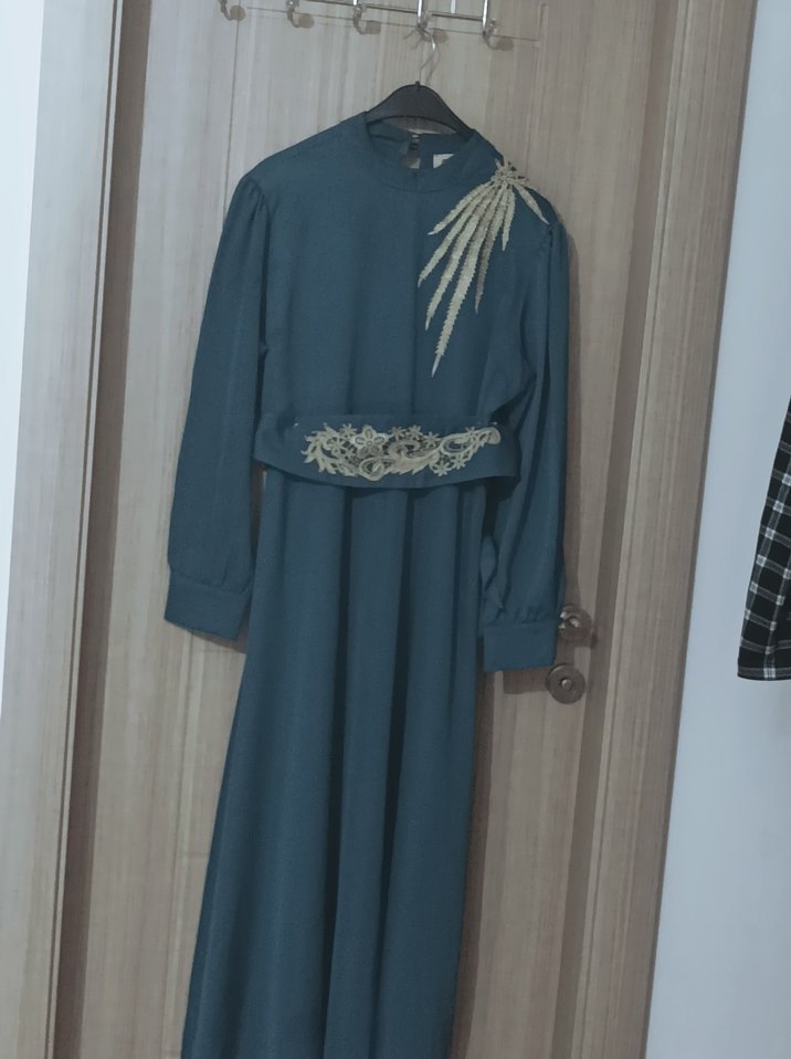 butik ürünü saten kumaz çok şık ve temiz kemeri ve omzu nakisli