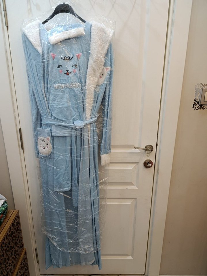 Nakışlı detaylara sahip, uzun ve bol kesim mavi kadın sabahlık. Uzun kollu ve yumuşak dokulu, rahat kullanıma uygun. ️ 6 pqrça set