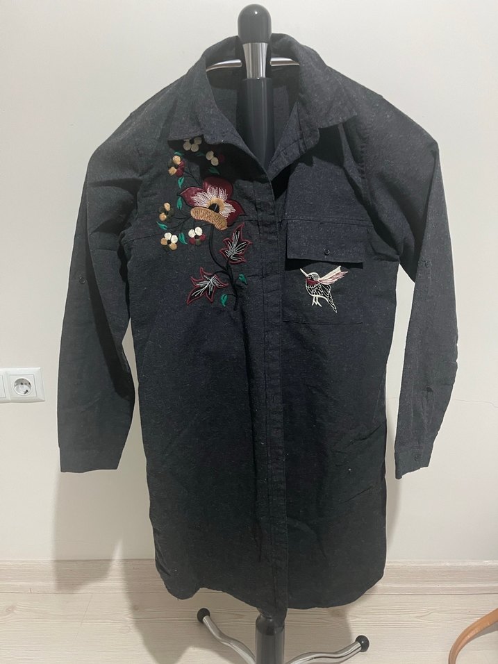 Nakışlı Uzun Tunik Gömlek Ceket