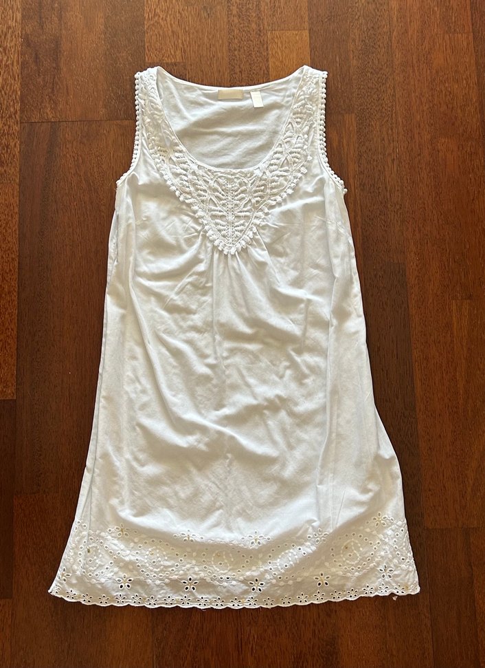 Nakışlı detaylara sahip, kolsuz, V yaka ve bol kesim Accessories markalı, 100% pamuk . Astarlı. Beden - S Uzunluk - 81 En - 39. Kusursuz