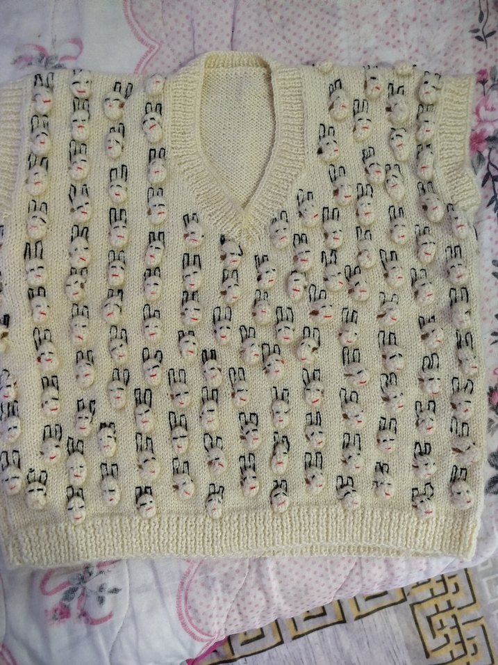 Nakışlı desenlere sahip, V yakalı, kısa ve oversize triko süveter. Bohem tarzda, rahat ve kolsuz tasarım.