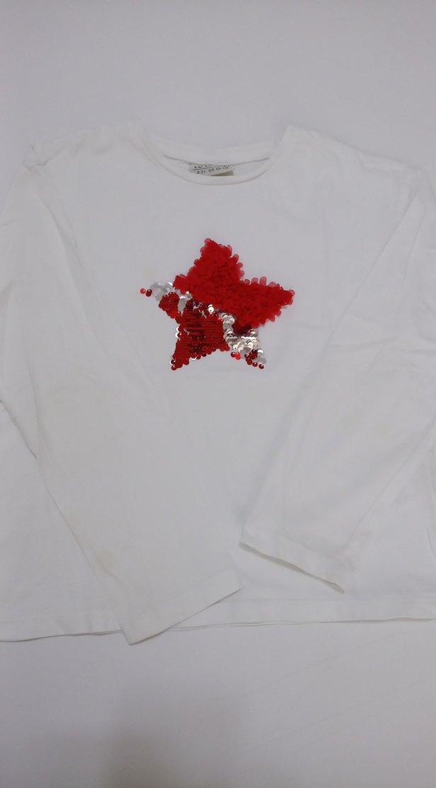 Yumuşak pamuk kumaştan, nakışlı ve boncuklu renkli yıldız detaylı, beyaz uzun kollu kız çocuk tişörtü. Salaş kesim ve yuvarlak yaka ile rahat bir görünüm sunar. ⭐