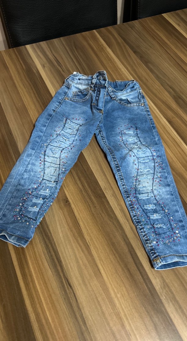 Nakışlı ve Payetli Mavi Kız Kot Pantolon