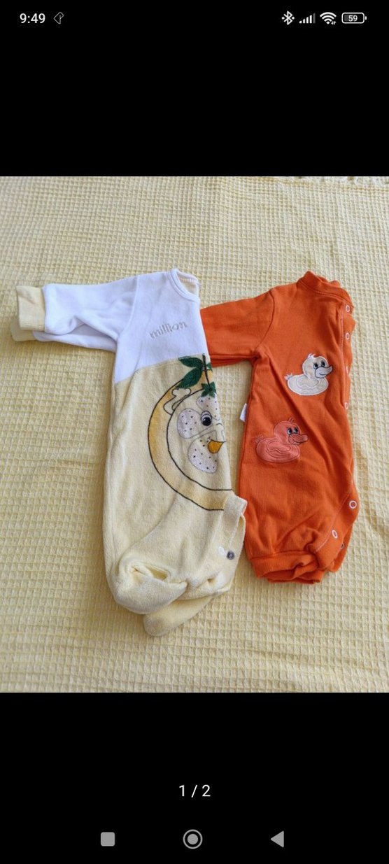 1-3 ay uyumlu Yumuşak ve sıcak kumaştan, nakışlı hayvan desenli renkli bebek tulumları, turuncu ve krem tonlarında.