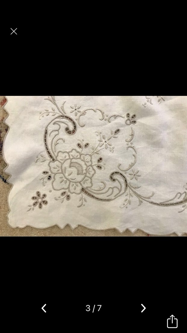 Bu vintage masa örtüsü, beyaz ve gri tonlarda detaylı nakışlı çiçek desenlerine sahiptir, masanıza klasik bir dokunuş katar.