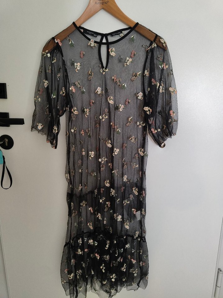 Nakışlı çiçek desenli, volan detaylı, askılı kol ve bol kesim uzun elbise. Koyu renkli çok renkli kumaş, bohem tarz ve yuvarlak yaka ile günlük kullanıma uygundur.