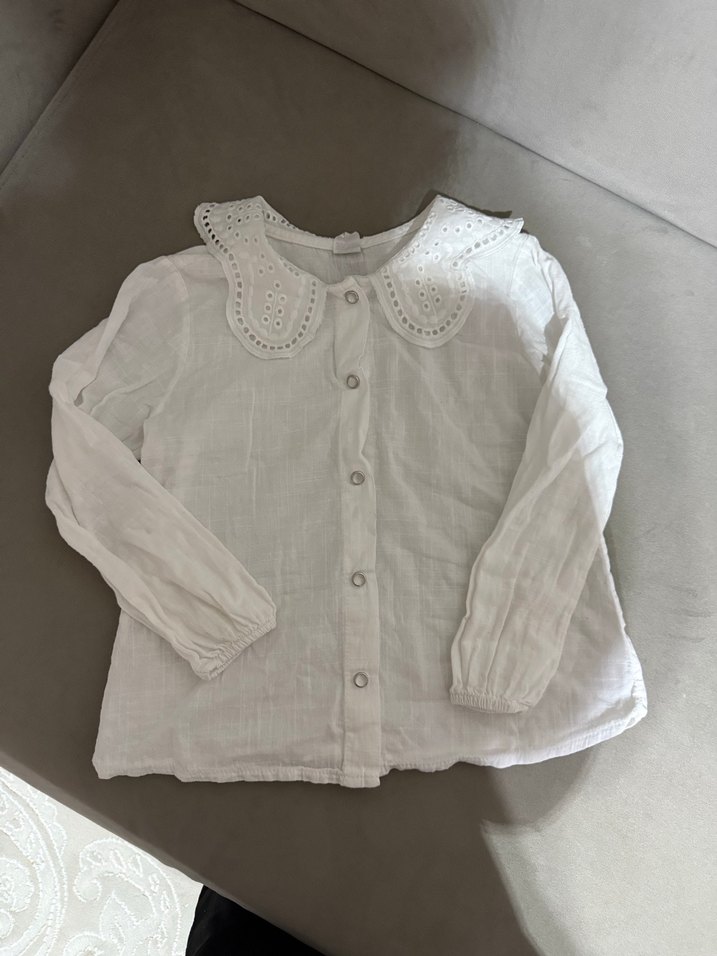 Nakışlı Yaka Detaylı Beyaz Kız Gömlek