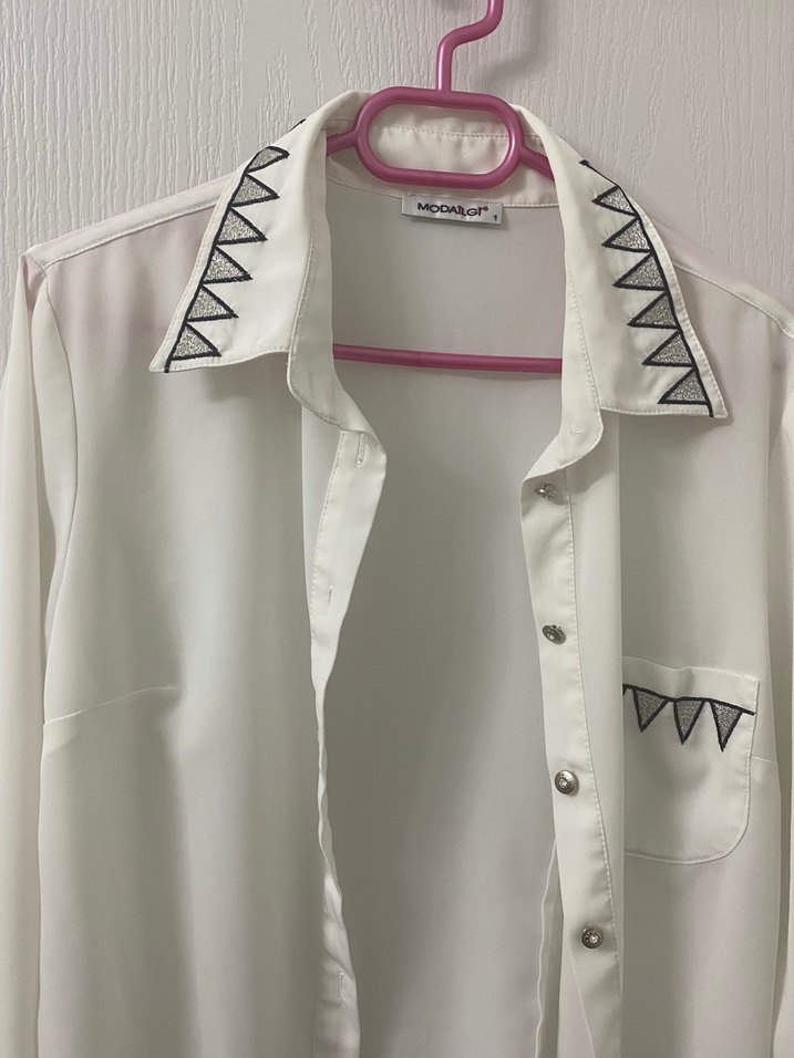 Nakışlı Yakalı Beyaz Kadın Gömlek