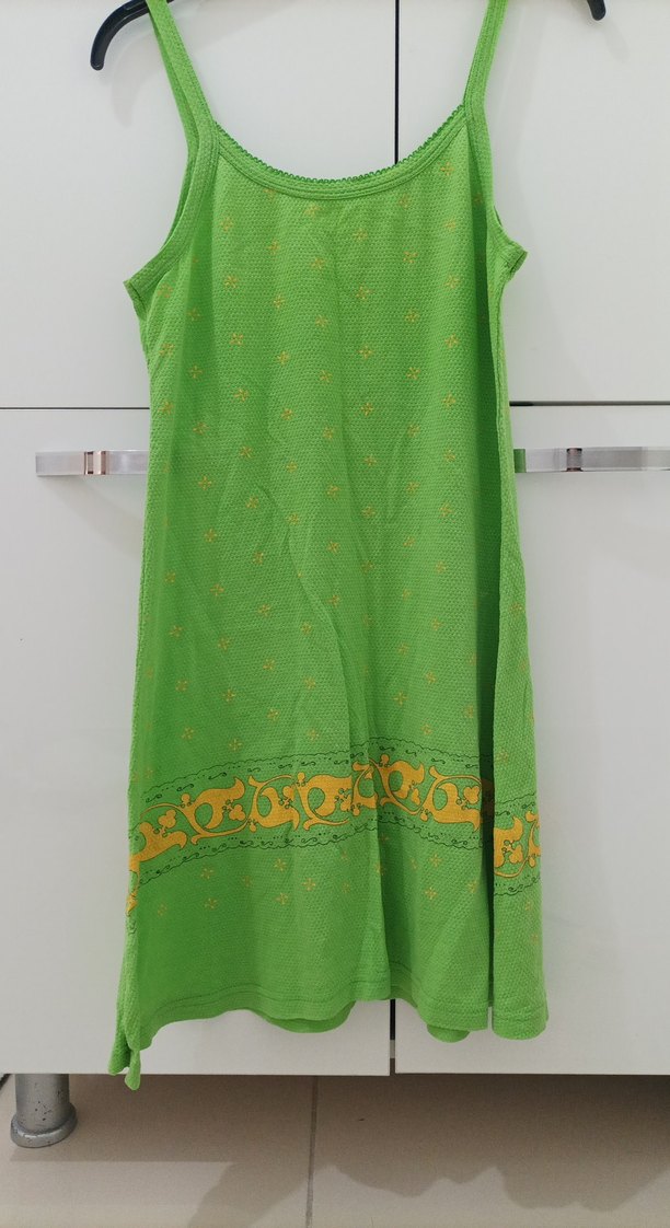 Nakışlı Yeşil Bohem askılı Elbise