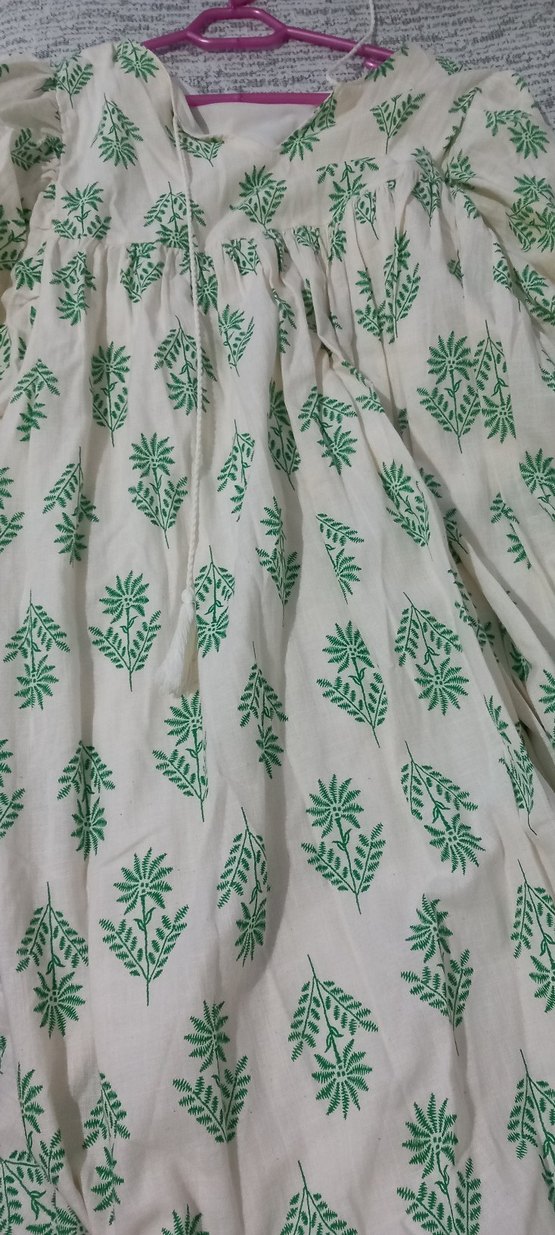 Pamuklu kumaştan, yeşil nakışlı çiçek desenleriyle uzun, bol ve drapeli hamile eteği, bohem stil için uygundur.