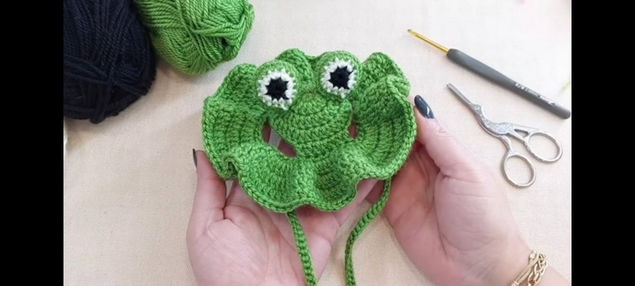 Nakışlı detaylara sahip renkli yeşil kedi beresi, eğlenceli kurbağa şeklinde tasarlanmıştır. Yumuşak ve konforludur.