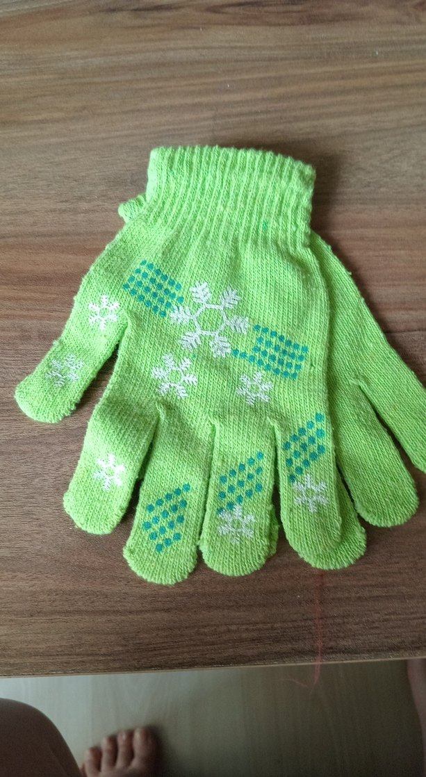 Nakışlı kar tanesi desenli yeşil kız çocuk eldiveni. Yumuşak örme kumaştan üretilmiştir ve rahatlık sağlar. ❄️