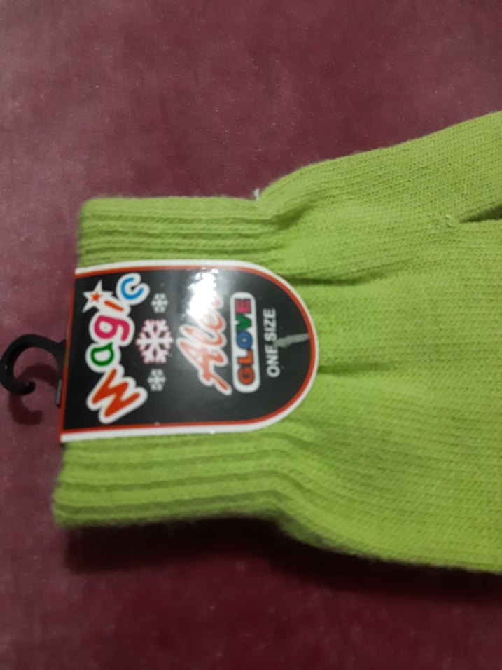 Yumuşak polar kumaştan örülmüş, renkli nakış detaylı yeşil kız çocuk eldiveni. Tek beden.