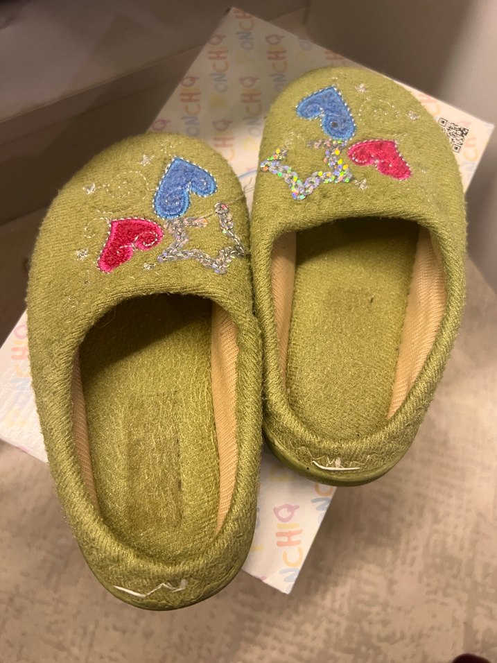 Nakışlı Yeşil kız çocuk ev terliği
